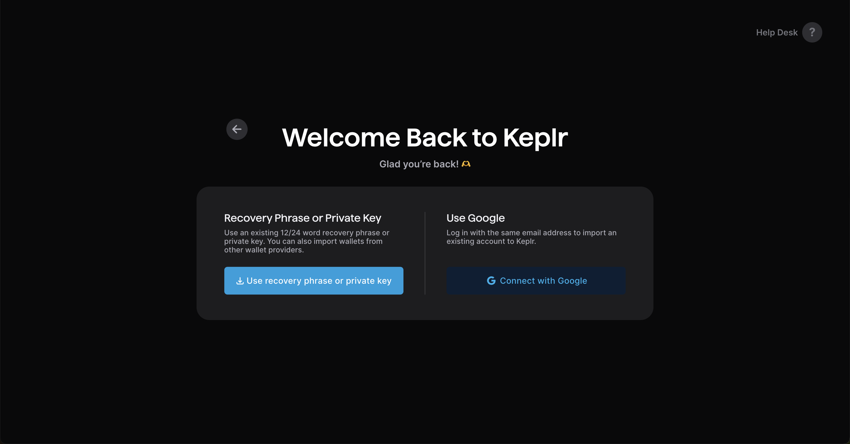 - If you have a Keplr or Leap wallet, proceed to the "Connect wallet" section.